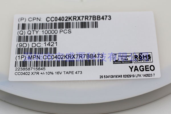 產品名稱:國巨陶瓷電容 0402 16V 0.047UF CC0402KRX7R7BB473