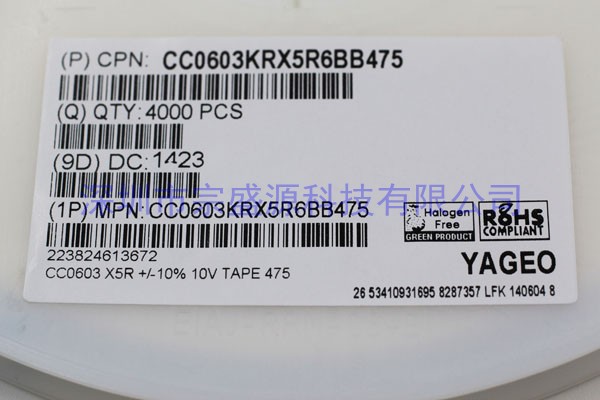 產品名稱:YAGEO電容 0603 10V 4.7UF CC0603KRX5R6BB475