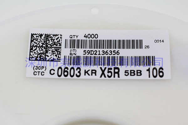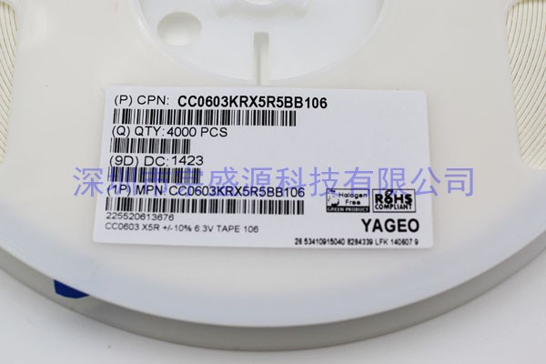 產(chǎn)品名稱:YAGEO電容 0603 6.3V 10UF CC0603KRX5R5BB106