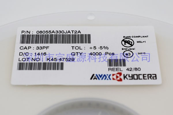 產品名稱:AVX陶瓷電容 0805 50V 33PF 08055A330JAT2A