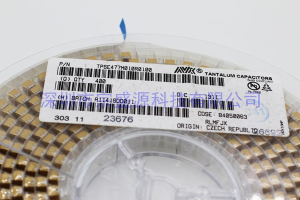 AVX鉭電容,AVX就是一家從事無源電子元器件和互連接產品的設計、開發、生產和銷售的公司,鉭電容是由稀有金屬鉭加工而成,先把鉭磨成微細粉,再與其它的介質一起經燒結而成。目前的工藝有干粉成型法和濕粉成型法兩種。鉭電容由于金屬鉭的固有本性,具有穩定好、不隨環境的變化而改變、能做到容值很大等特點,在某些方面具有陶瓷電容不可比較的一些特性,因此在很多無法使用陶瓷電容的電路上鉭電容被廣泛采用。其中AVX公司生產的鉭電容的產量相當可觀。