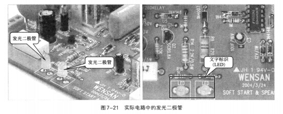 實(shí)際電路中的發(fā)光二極管見圖7-21。