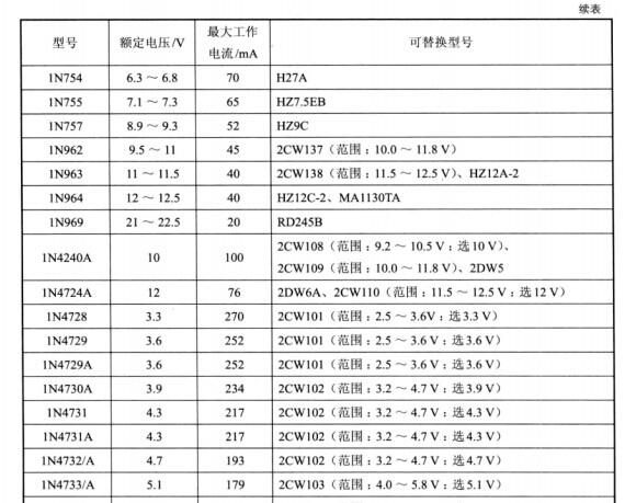 表7-8  常見穩壓二極管型號及可替換型號速查表