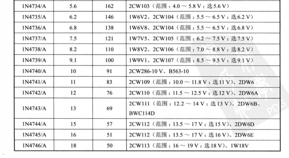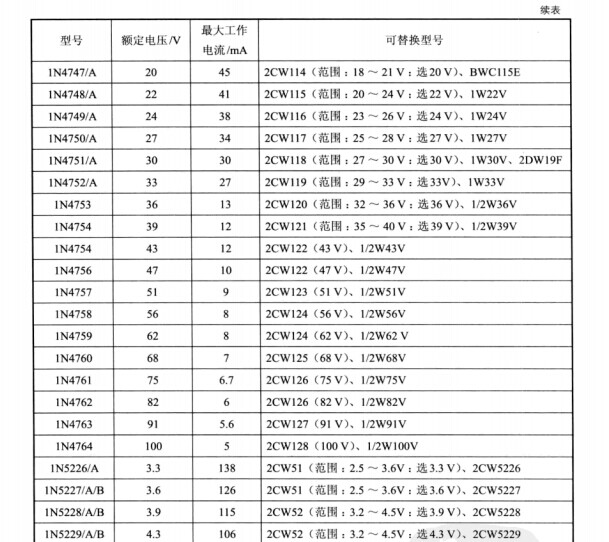 常見穩壓二極管型號及可替換型號見表7-8所列。