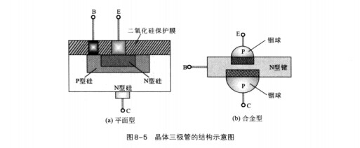平面型和合金型晶體三極管的結(jié)構(gòu)示意見圖8-5。