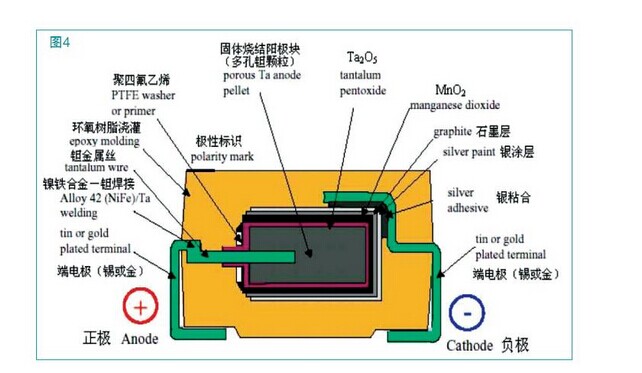 結(jié)成一多孔的堅(jiān)實(shí)芯塊(圓柱形狀),芯塊經(jīng)過(guò)陽(yáng)極化處理生成氧化膜TA2O5,再被覆固體電解質(zhì)MNO2,然后